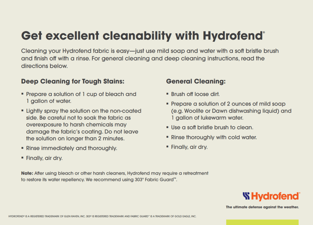HOW TO CLEAN YOUR HYDROFEND FABRIC
