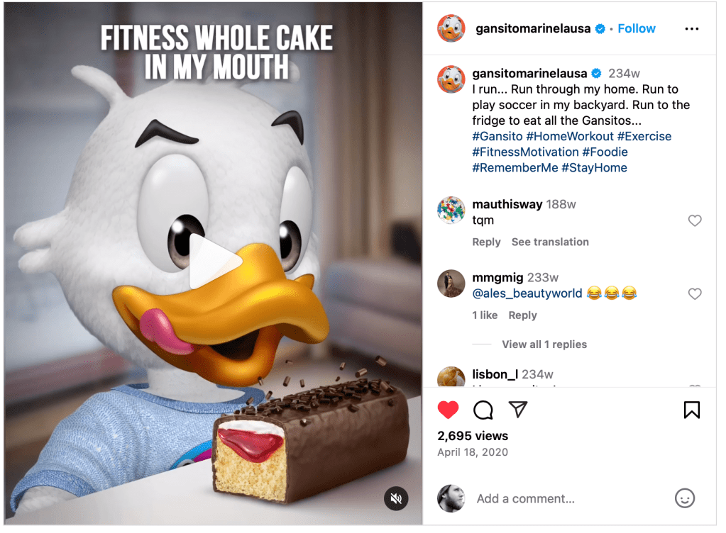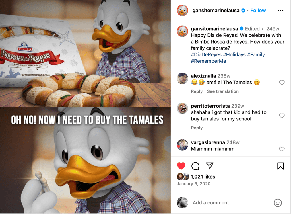 I was one of the main creatives for the Facebook and Instagram pages of Marinela USA and Gansito Marinela USA. Besides the copy on the image, I also wrote and edited the post copy. The Marinela brand’s social media presence is extremely successful, with $0.45 cost per like. My work includes posts that have had +25 million reach and nearly 8% engagement rates. I was even featured in a post that had over 1 million views.