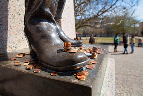 “Pennies on Sully” Ross is a common Texas A&M tradition. Aggies place pennies on the shoe of the stature of revered former president, Lawrence Sullivan “Sul” Ross. I mixed the tradition with a Cherries on the Rocks drink, making, “Cherries on the Ross”.